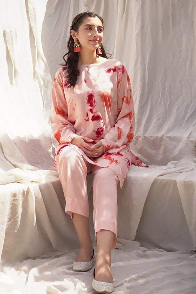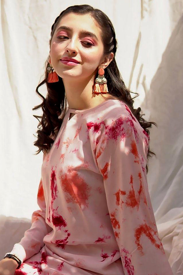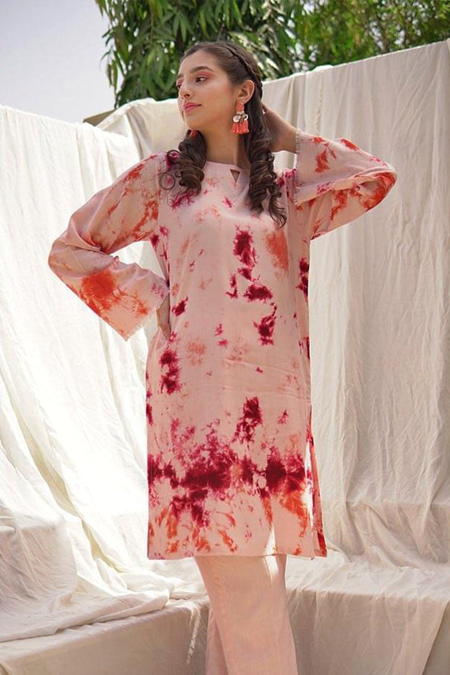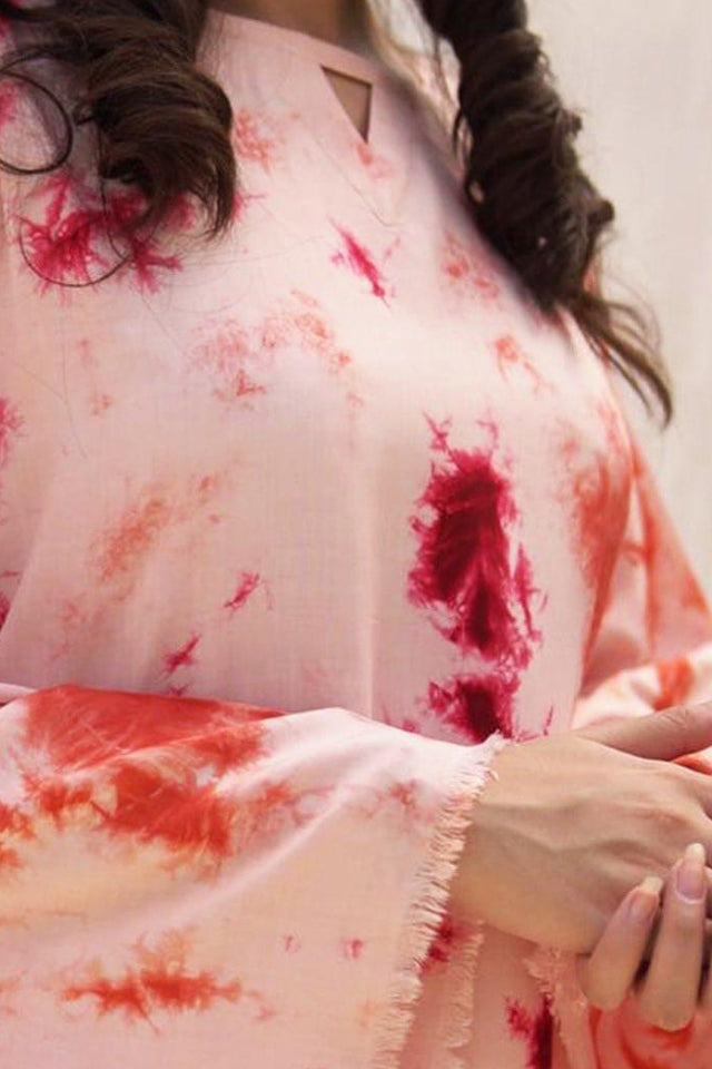 Peach tie and dyed 2 pc Co-ord set with the shades of rust and fuchsia pink paired with culottes.